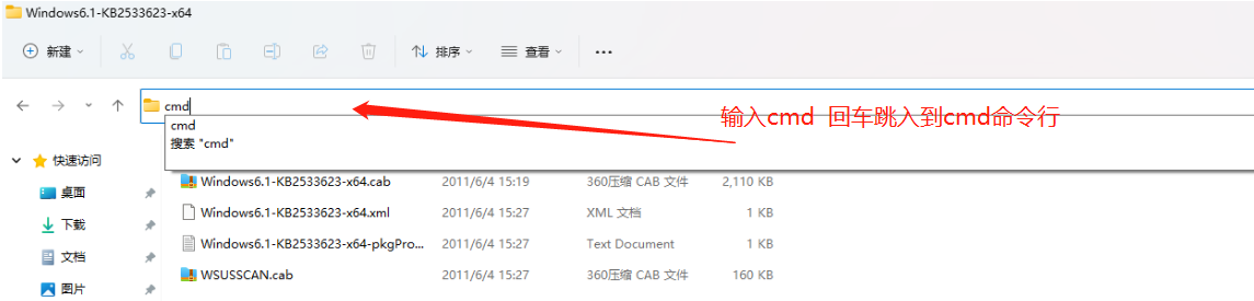 2.到c盘 Windows6.1-KB2533623-x64 目录下